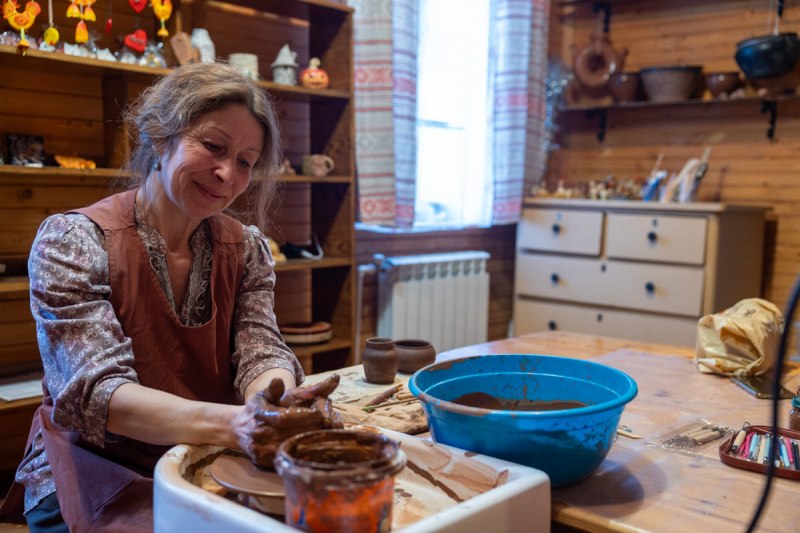 В Доме ремесел демонстрируют различные техники: плетение из бересты, лозы и болотных трав, работу на гончарном круге, а также старинную вышивку бисером по льняной нити, известную как «сажение по бели». Каждая мастерская знакомит с предметами быта и декора из природных материалов и инструментами для их обработки.