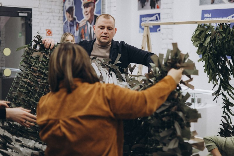 Псковские добровольцы сплели сети маскировки для фронта